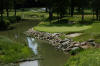 hazard. Approach across creek to 25ft de-elevated green. Small green (18yd