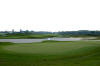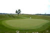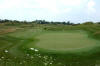 28yd wide. The green is mostly level and is surrounded by grass mounds.