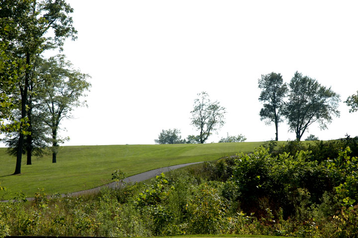 A drive at the two center trees beyond the top of the hill is best