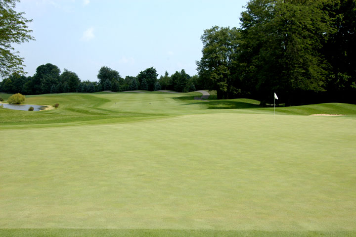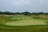 Slightly elevated green is 35yd deep. The green has numerous gentle sways