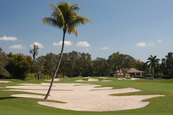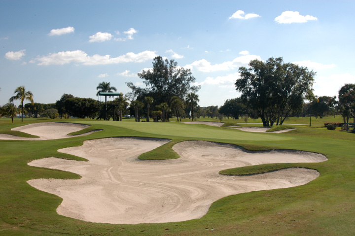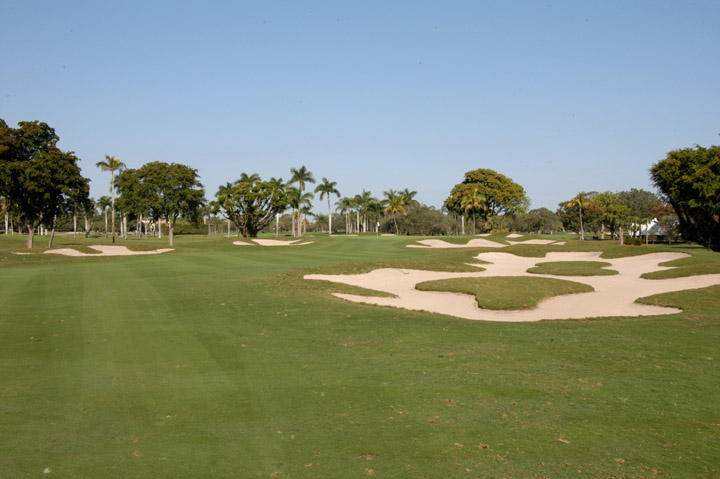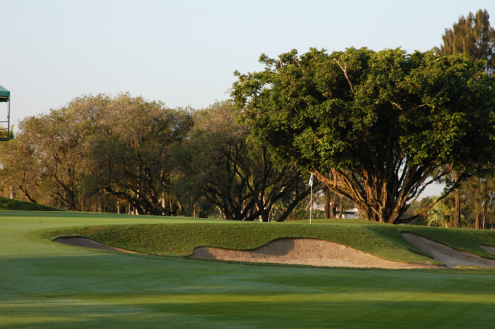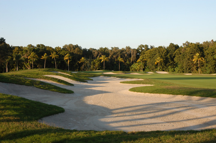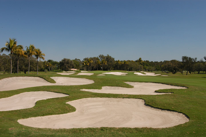 unfairly. Tee shots navigate numerous bunkers on each hole, but rarely does the lip