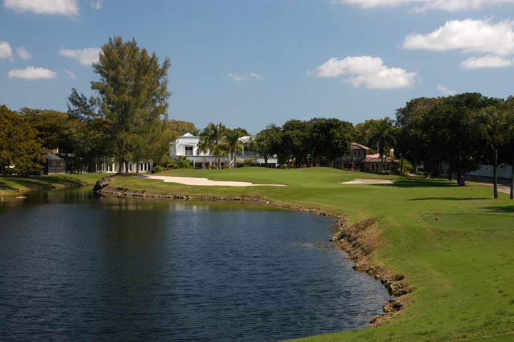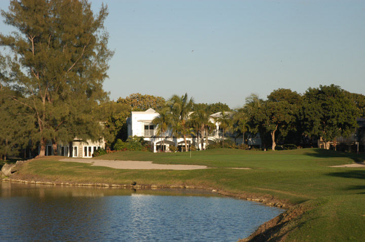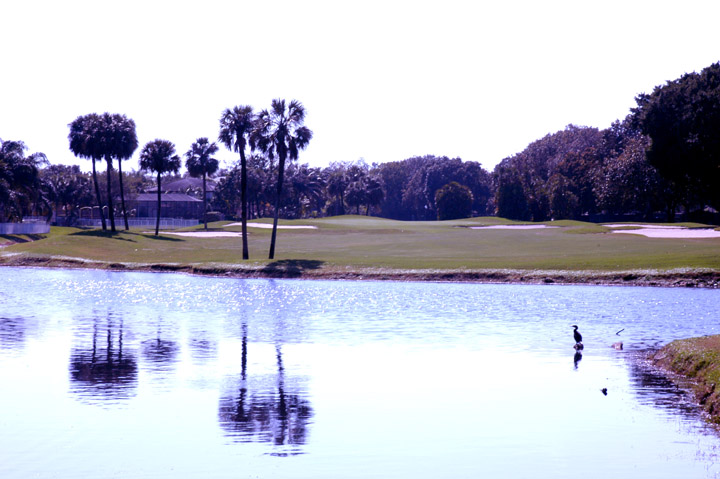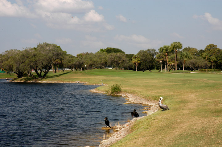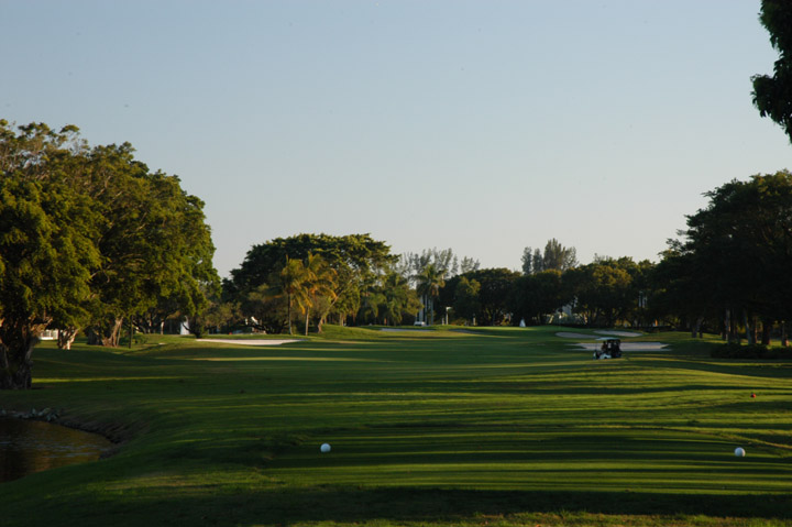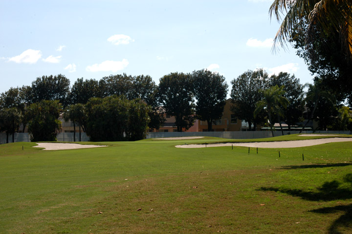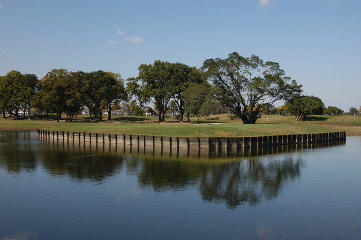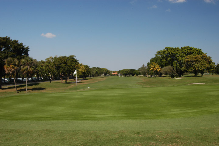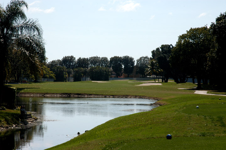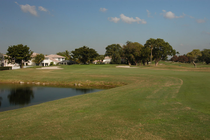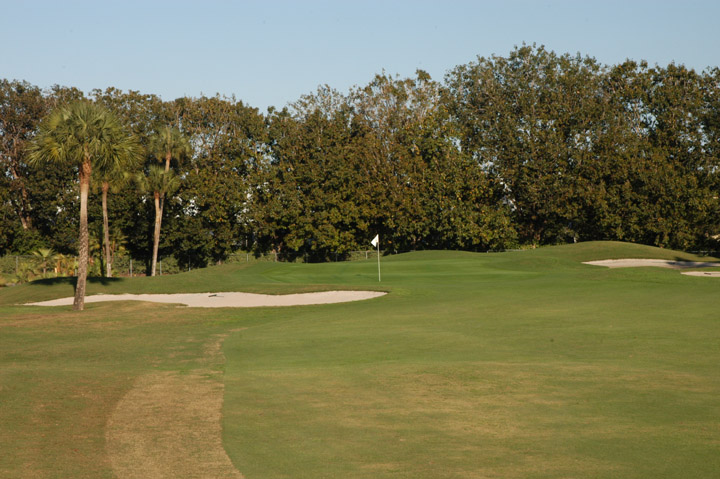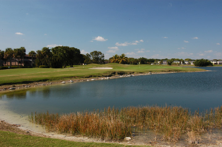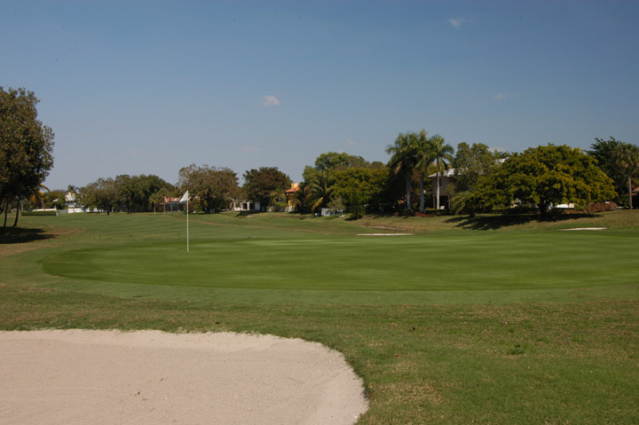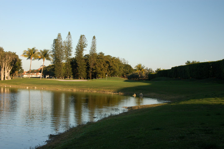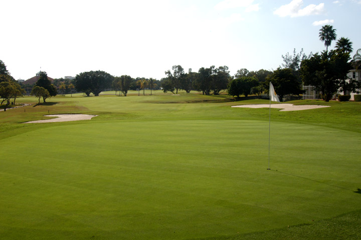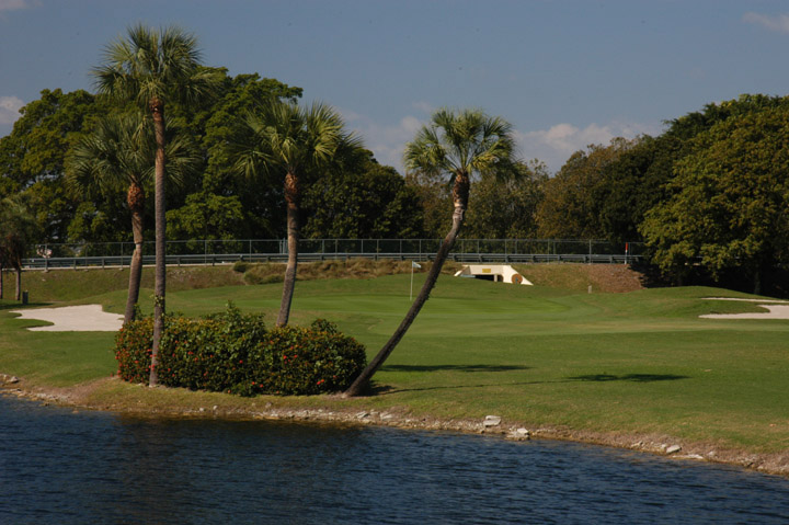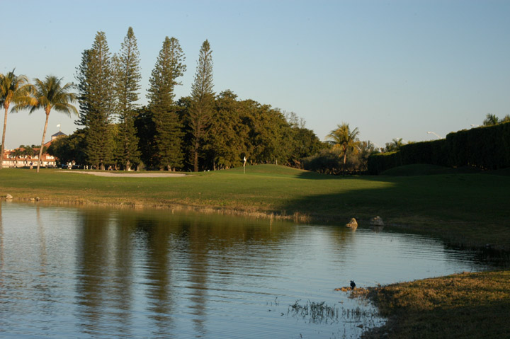 and water cuts off fairway. Island green. 31yd deep green. Ridge across at 65% depth slopes