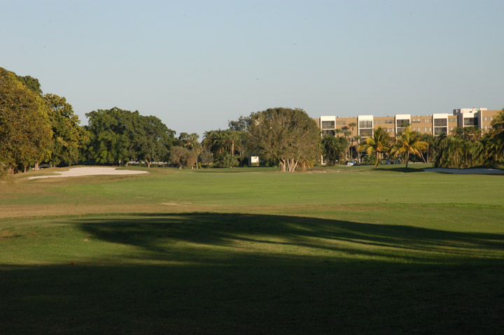 along the right. On second shot, open fairway from 150-100yd CG. 29yd deep green angled gently