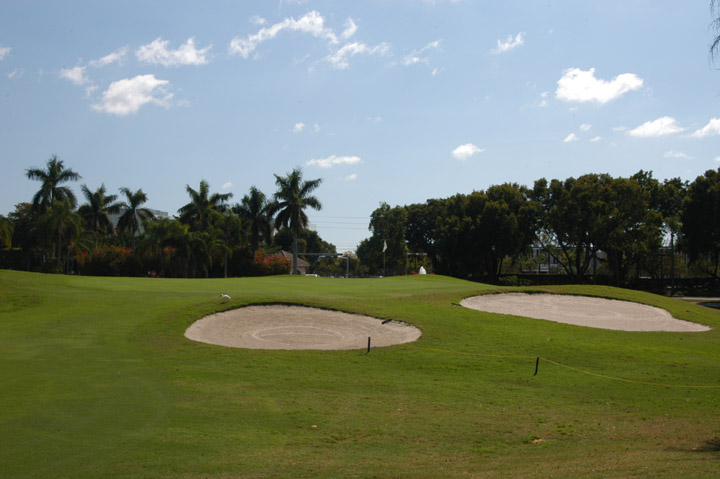 Short Par 4. Left bunker ends at 92yd CG (water after and left of