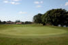 narrow on left with water canal. Level, 28yd deep green with right 1/3 having gentle slope to