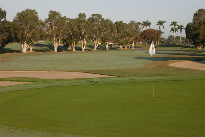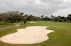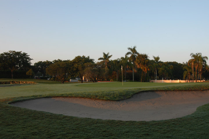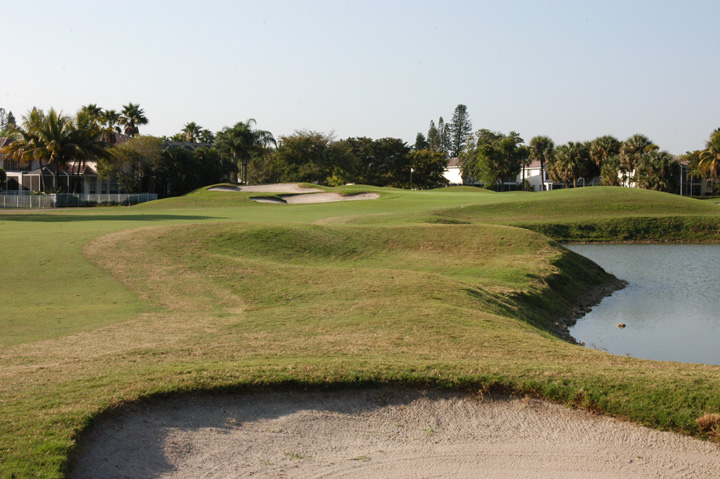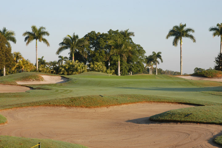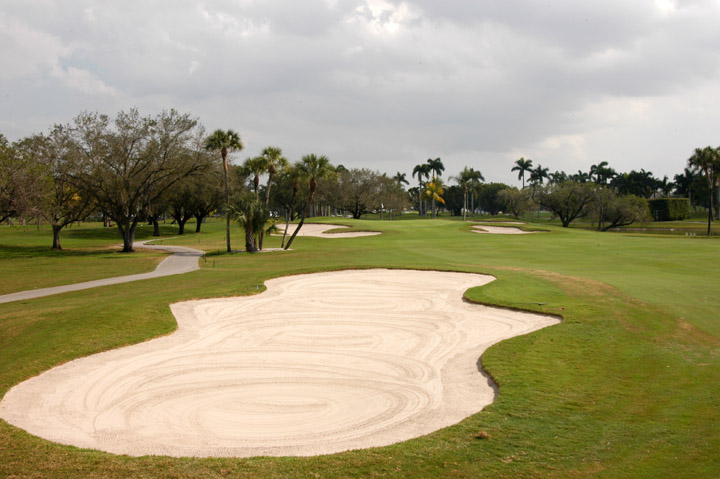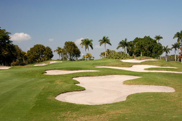 golfer start playing defensively. Large bunkers litter the fairways and the front side