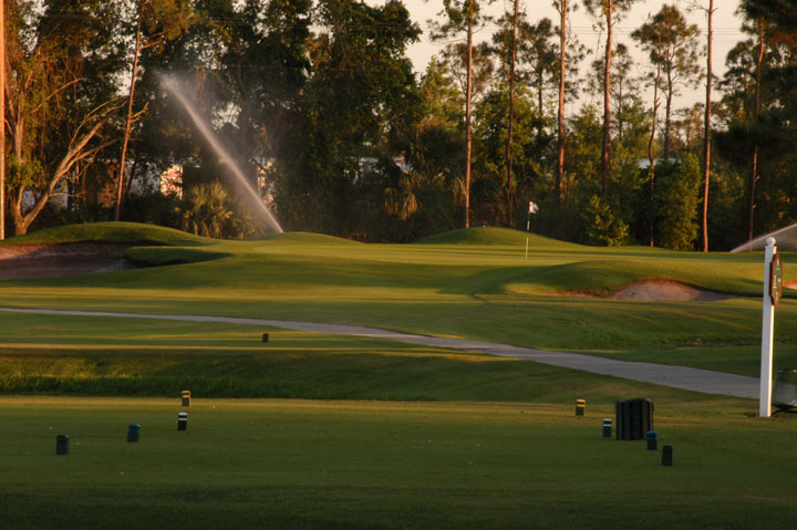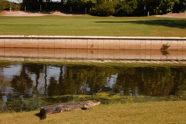 crowded city resorts. Island greens, spacious bunkers and gators make up the most