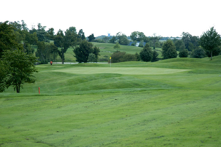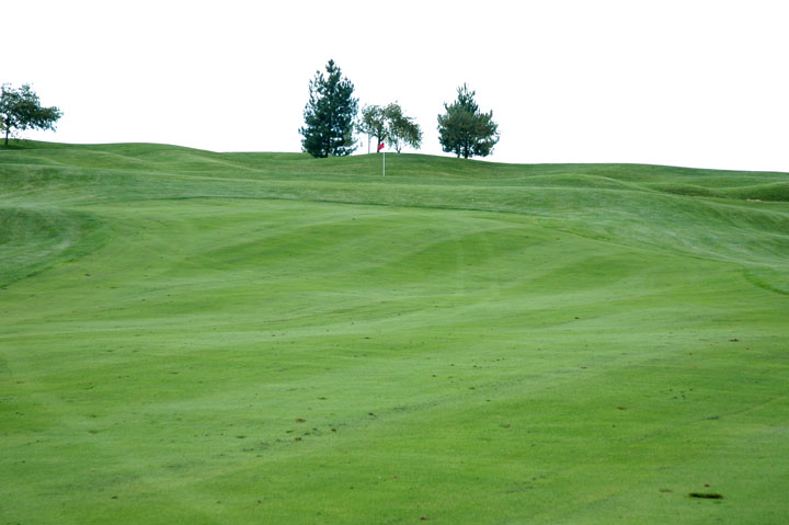 leading up to the green. Only an 11yd deep green at the midline ridge (that