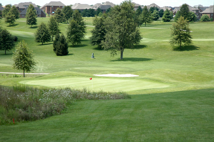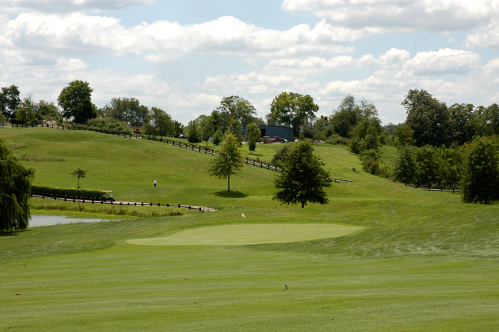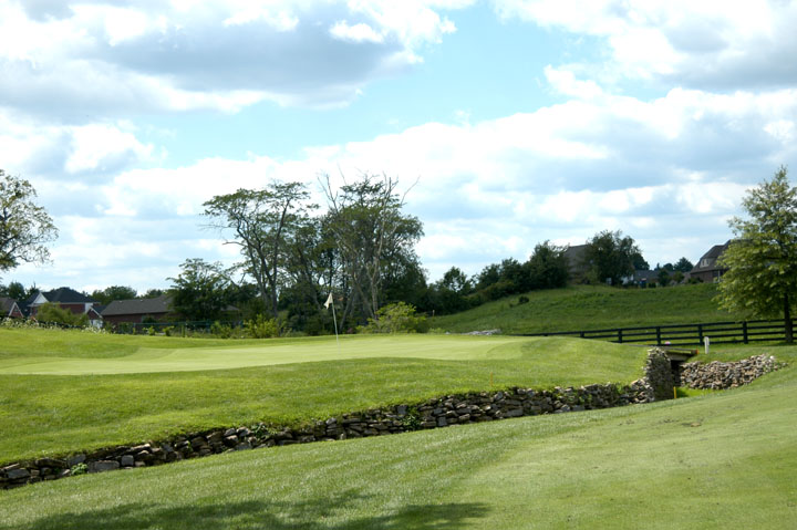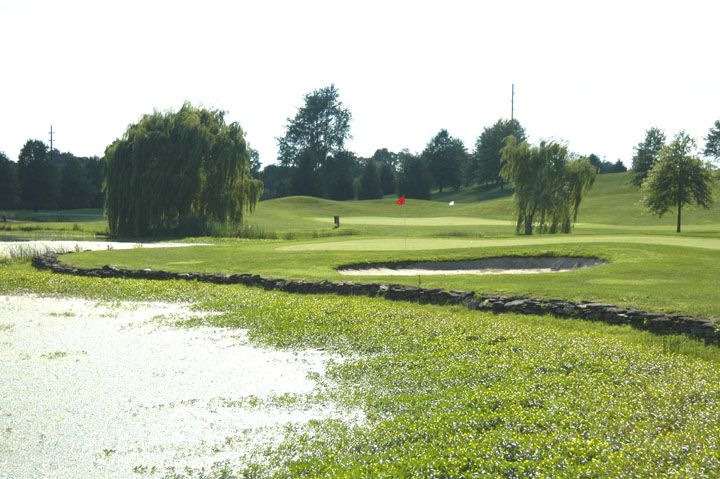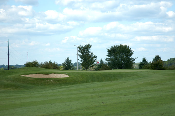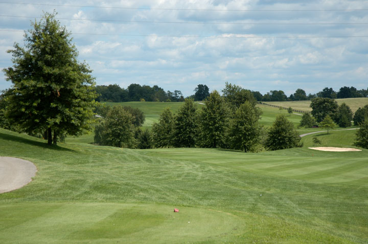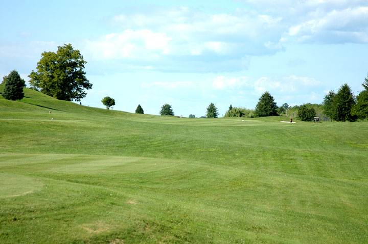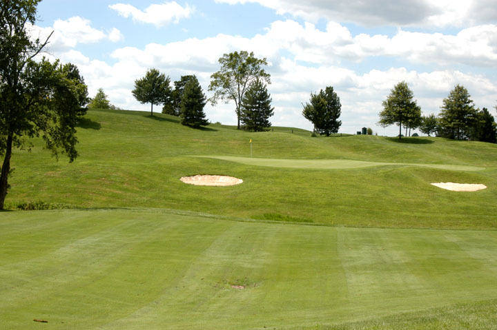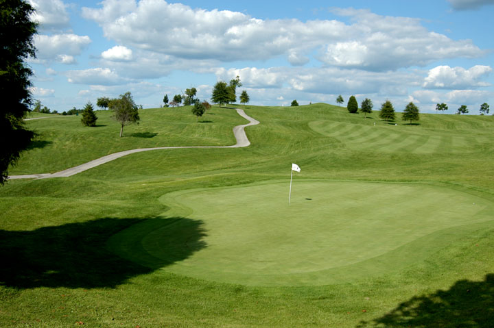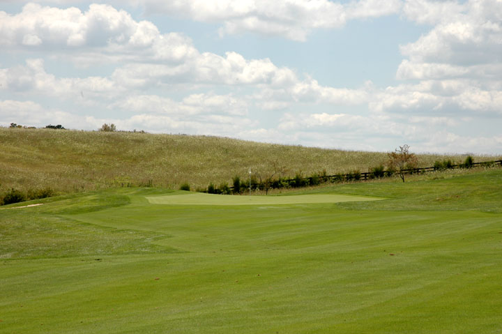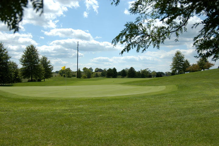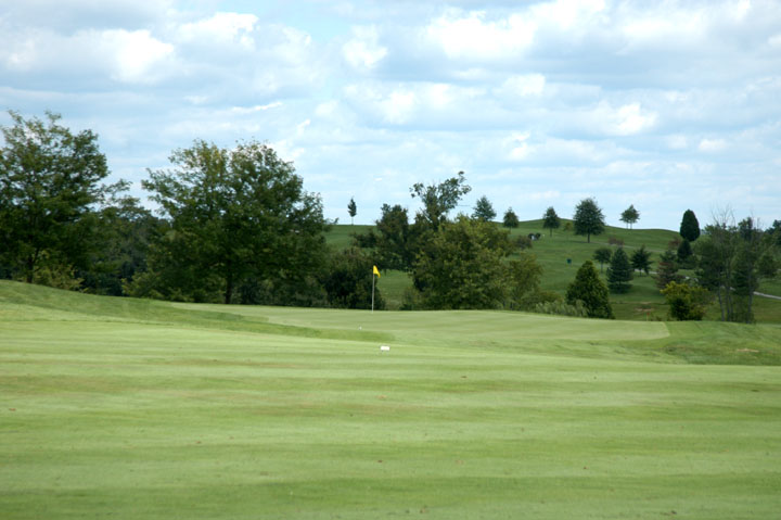 begins at 141yd from CG. Slightly uphill approach to a 41yd deep green that