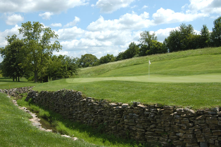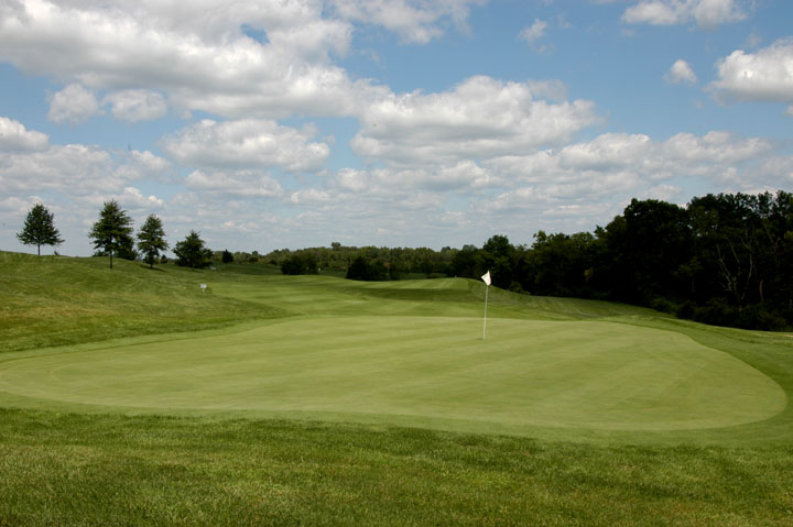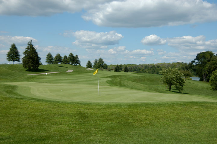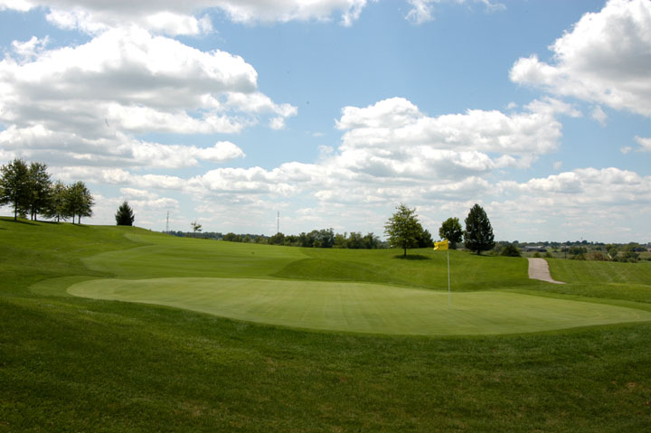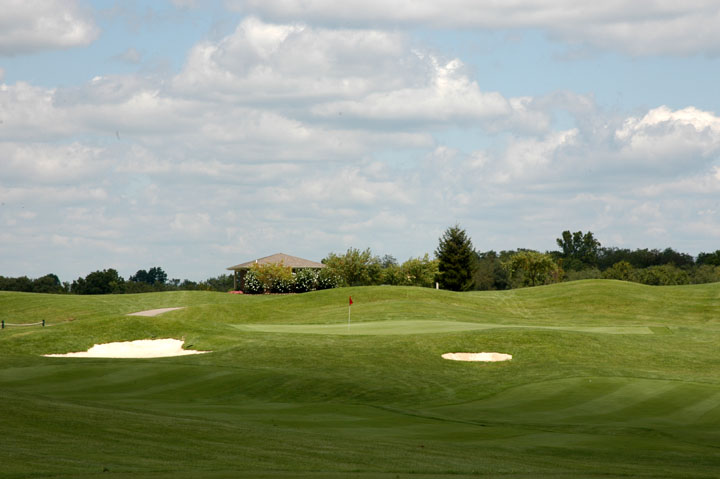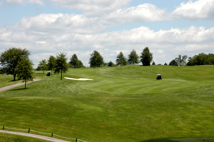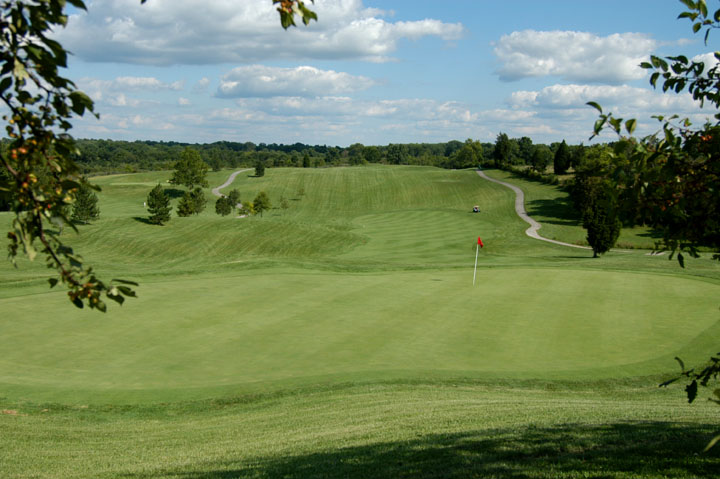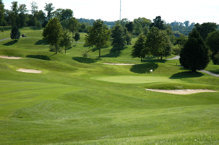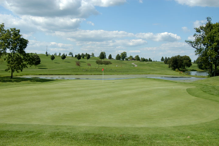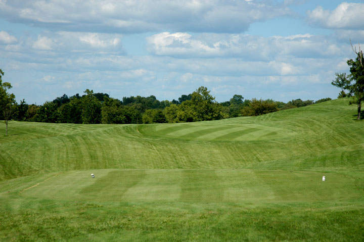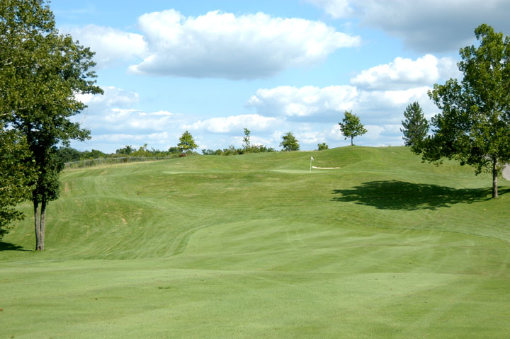 begins at 141yd from CG. Slightly uphill approach to a 41yd deep green that