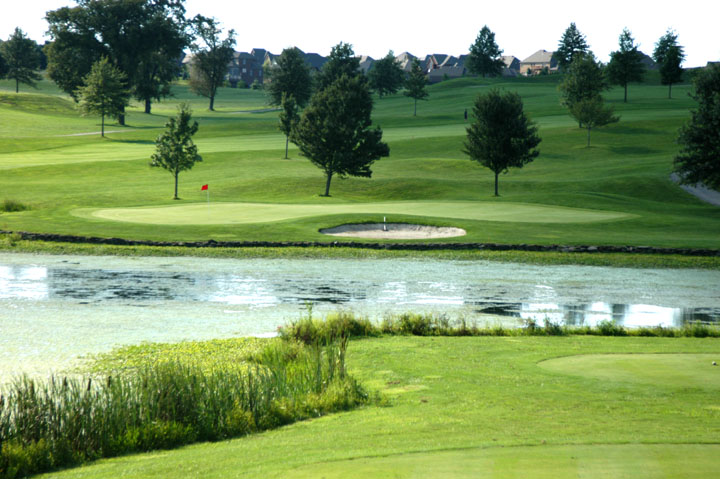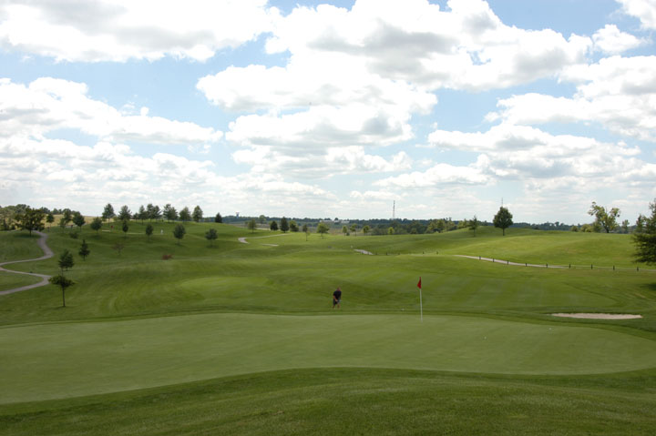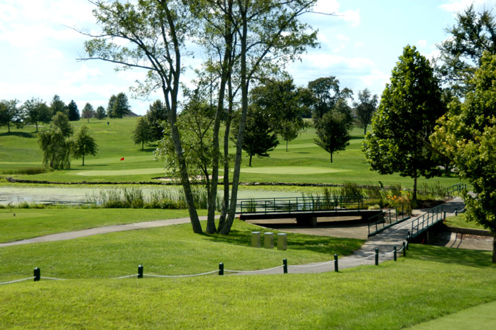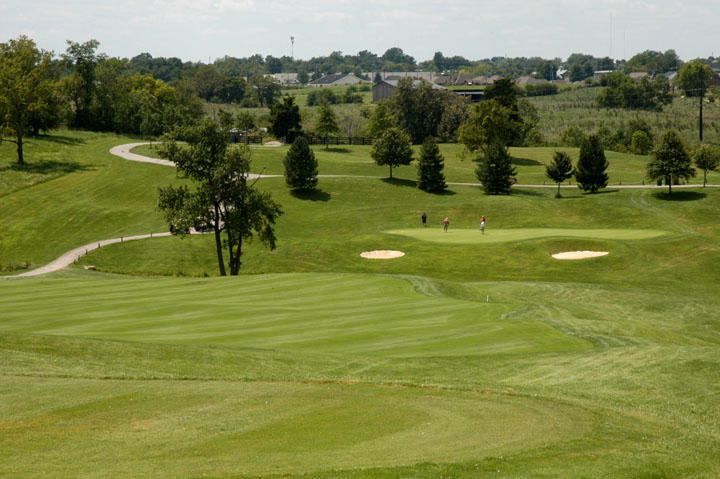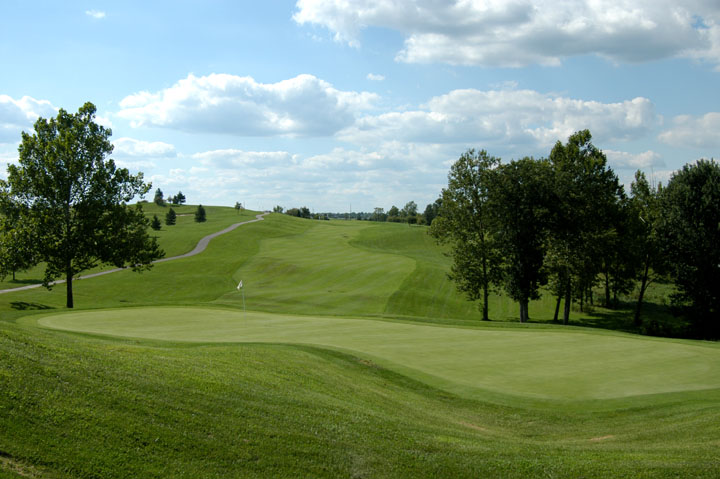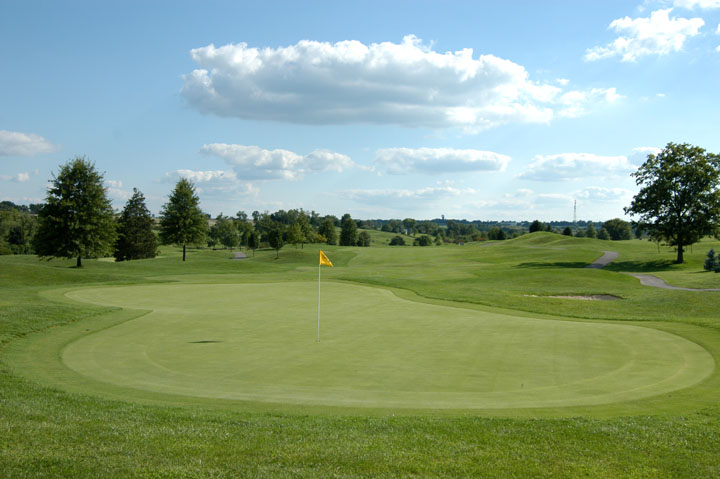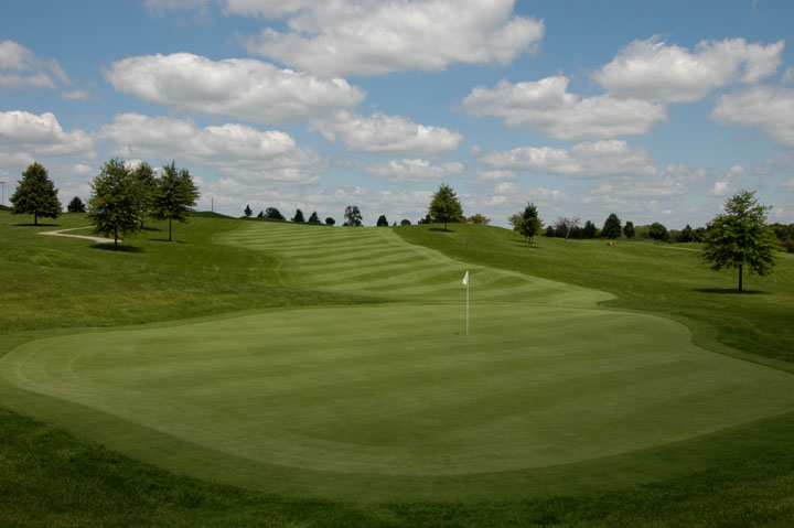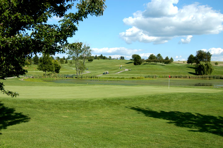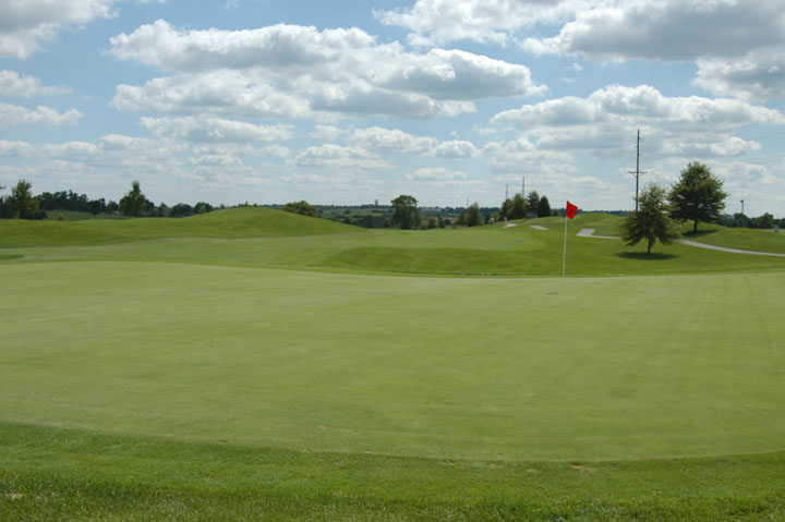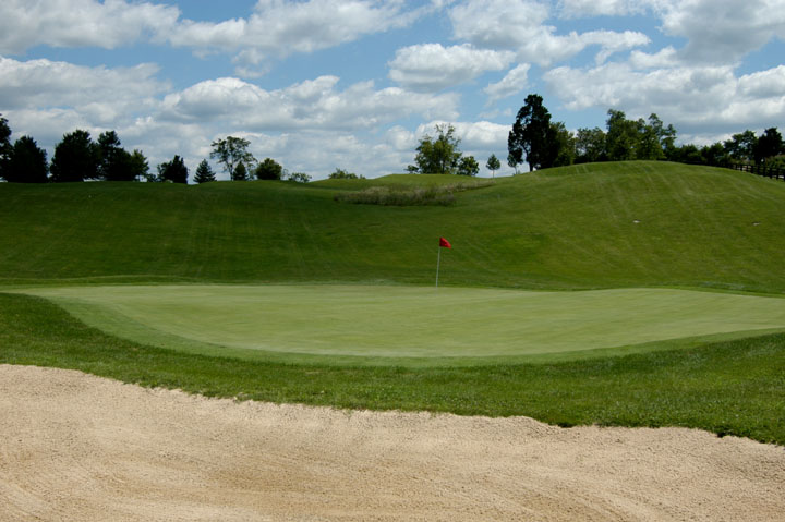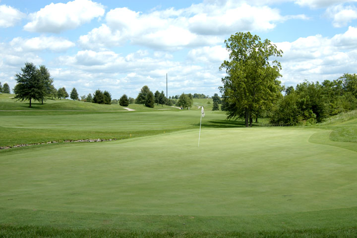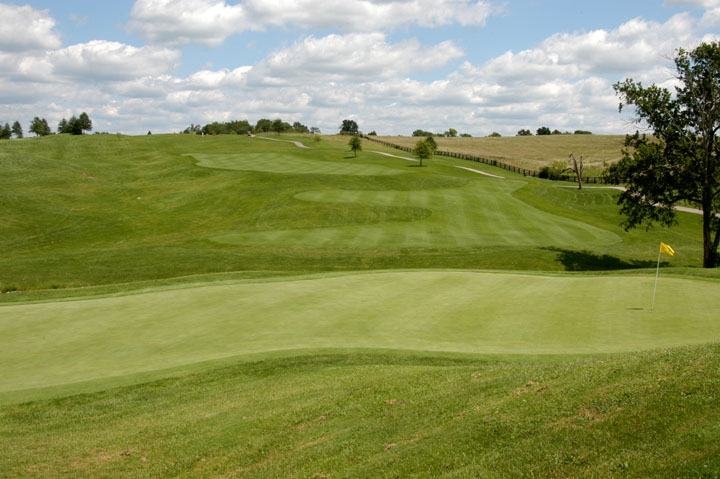 begins at 141yd from CG. Slightly uphill approach to a 41yd deep green that