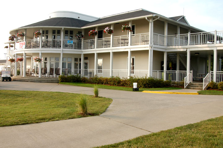 narrowest portion at 170yd from CG. Right 1/2 of hte fairway plays best. Layup shots should give