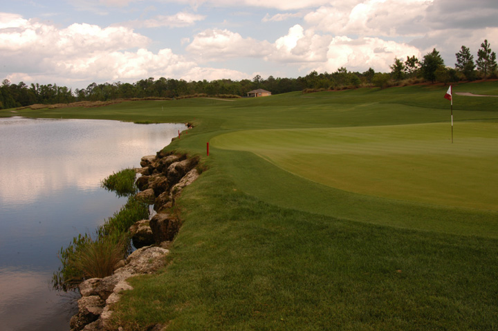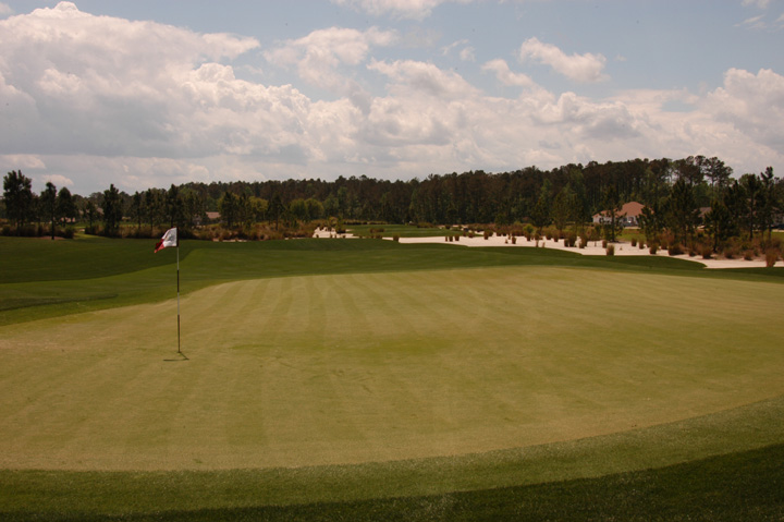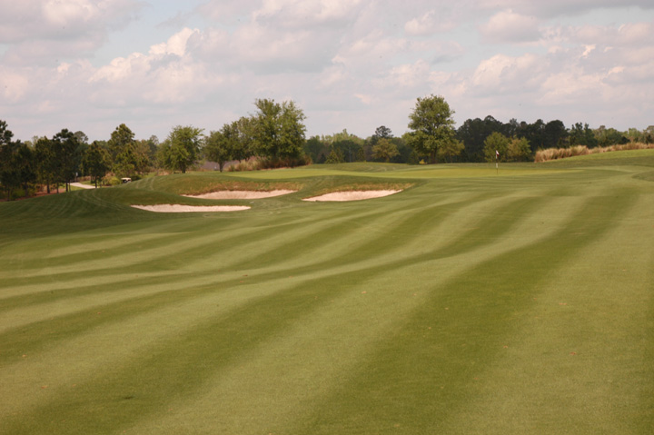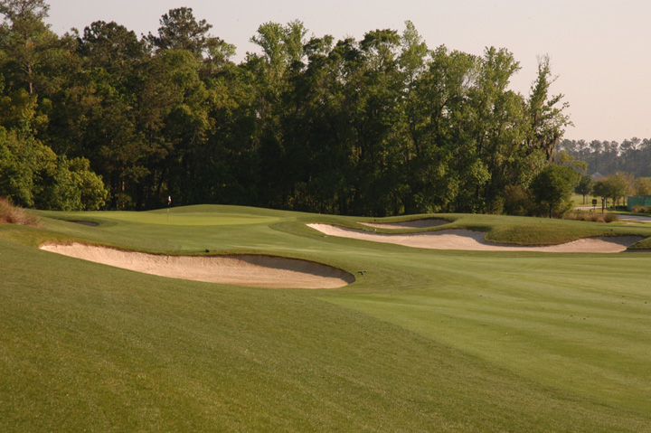 bunkers, water and gators lurk. Approach shots are to huge greens with plenty of ridges