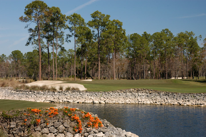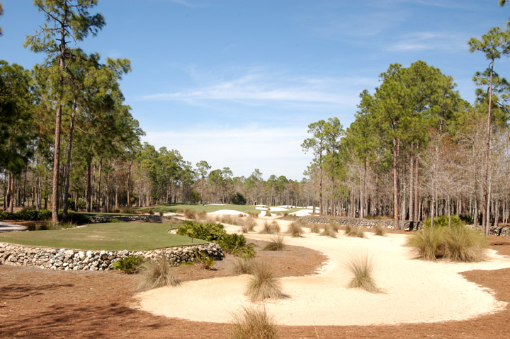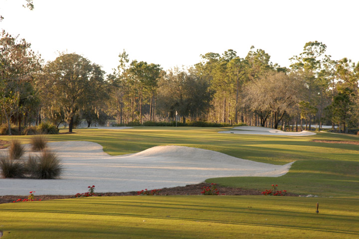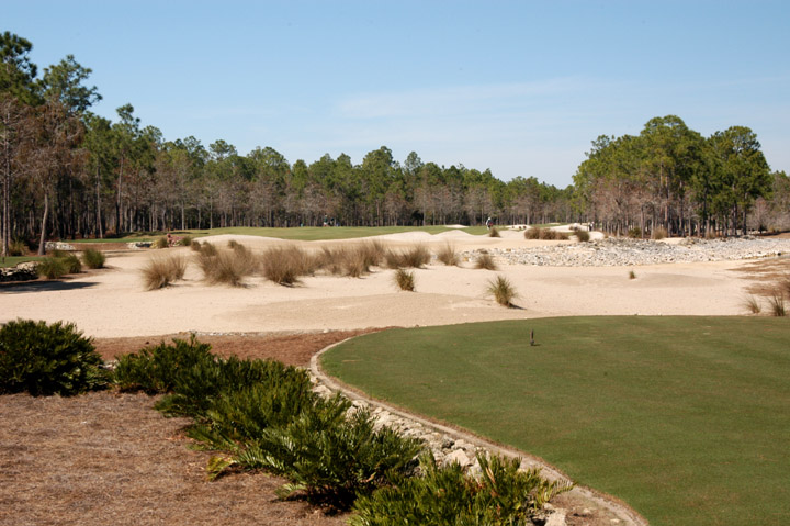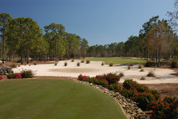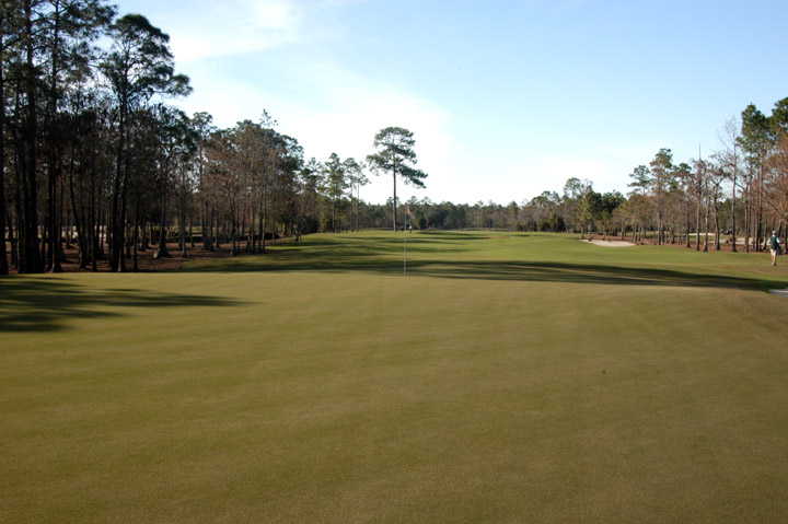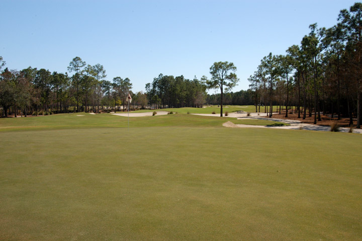 reach green, but left 1/2 of the green is guarded by bunkers. Left of the green is immediate