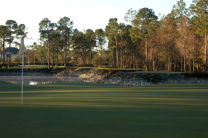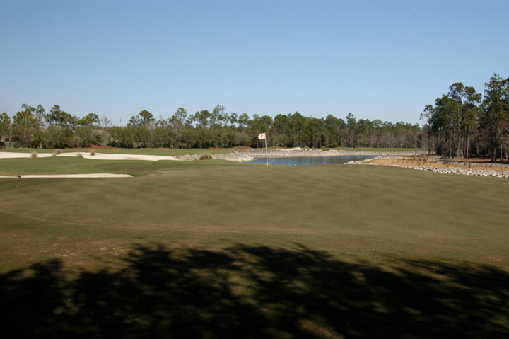 1/3 of the green slopes slopes toward the back left water hazard. |