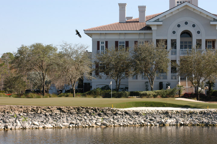 water hazard. Right of the green is also water hazard. 26yd deep green angles left. At CG, the