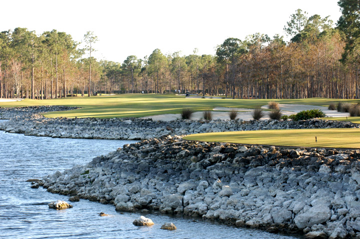 CG) with water to the right. Water cuts off the fairway 60yd shy of the green. 29yd deep green