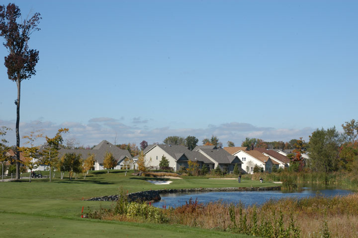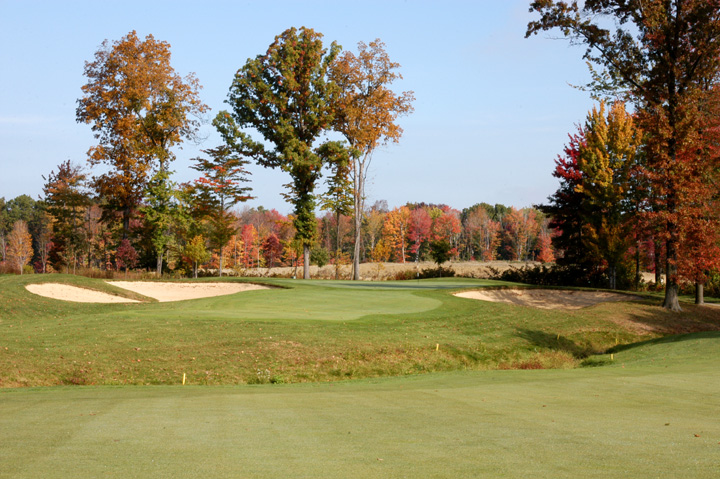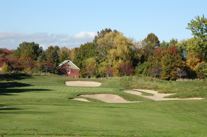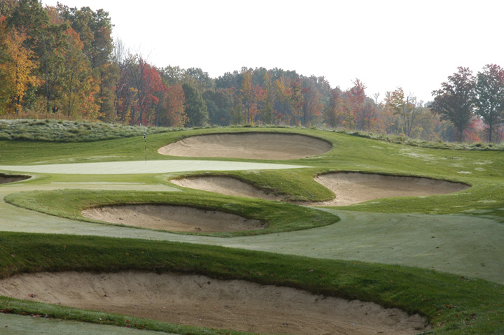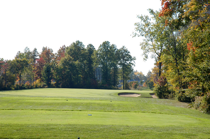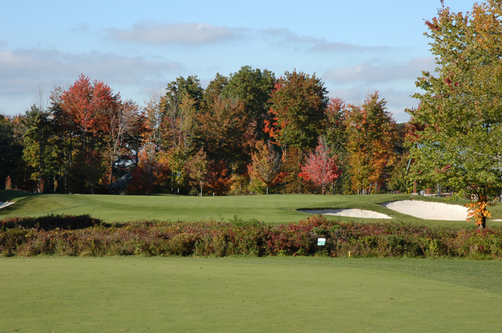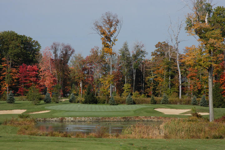 at 196yd CG (249yd from Gold tees). Approach to a 32yd deep green. Right 1/3 and left 1/3 have