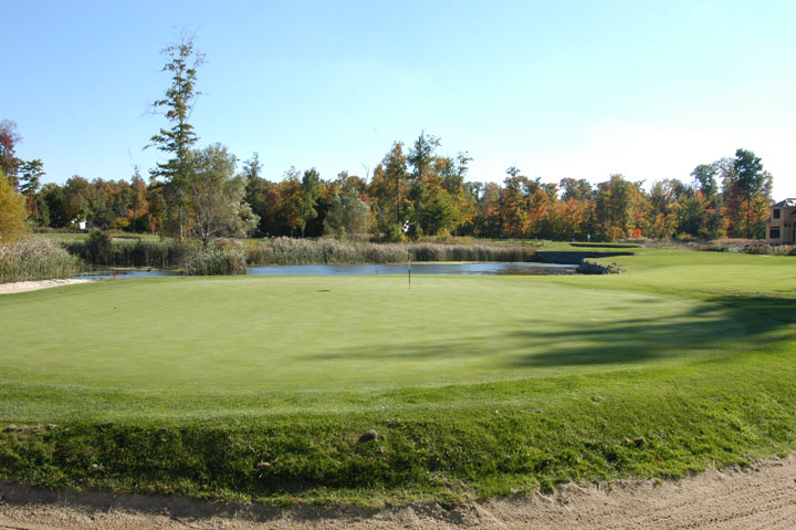 slight slope to the front at 45% depth. Back 45% of the green slopes gently away from the