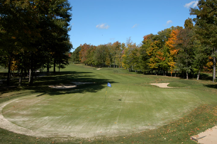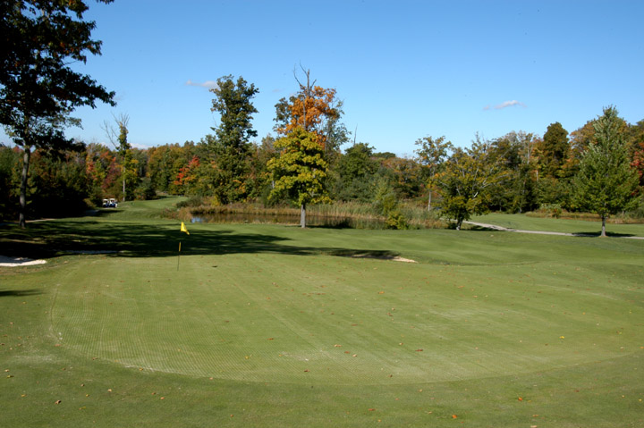 (begins on left side at 85yd CG) to a 21yd deep by 33yd wide green. Left 1/4 is raised causing a