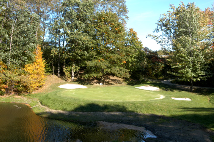 Par 3 over water. 20yd deep green by 24yd wide. All flows to the