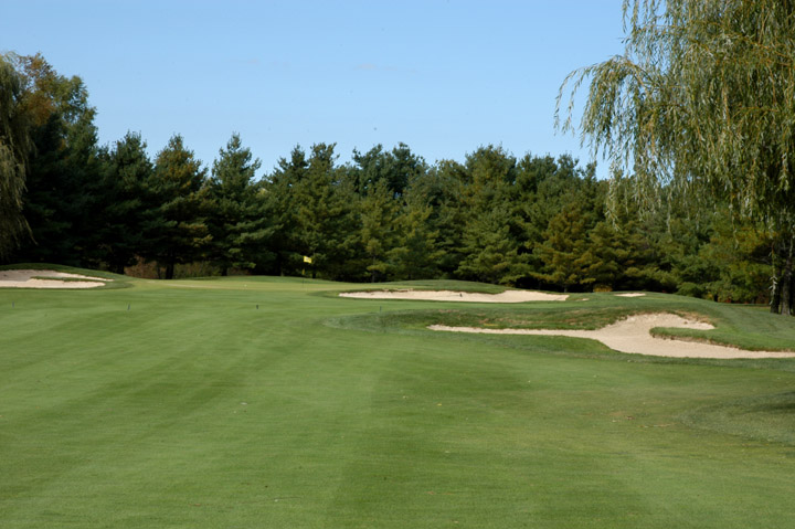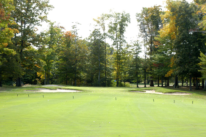 Hugging right bunkers plays best for second shot. Left bunker begins 172yd out from green tees.