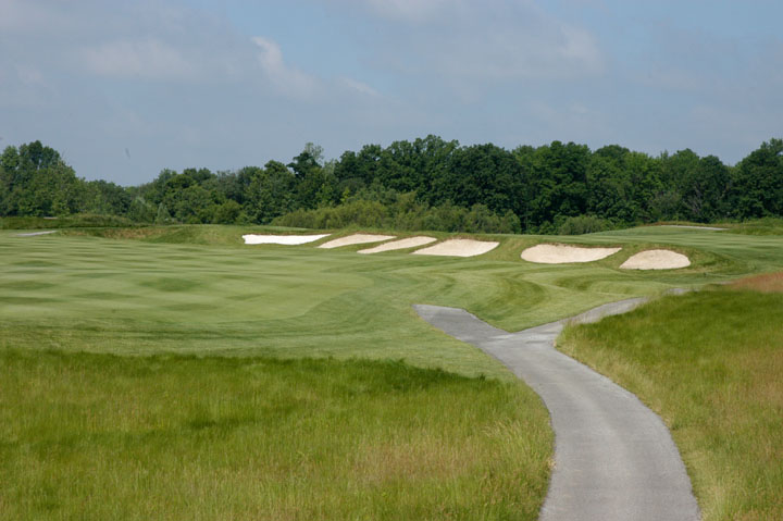 assisted by a series of mounds lining the right edge of fairway or will be