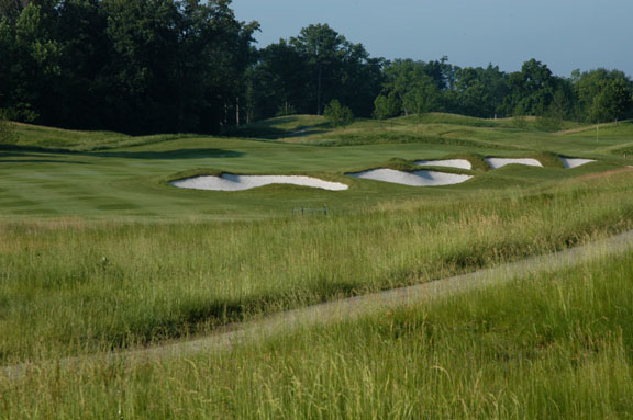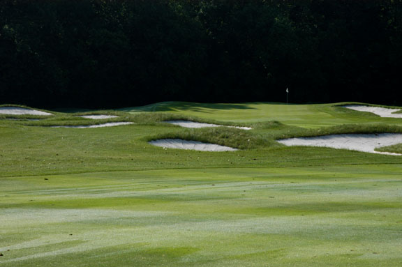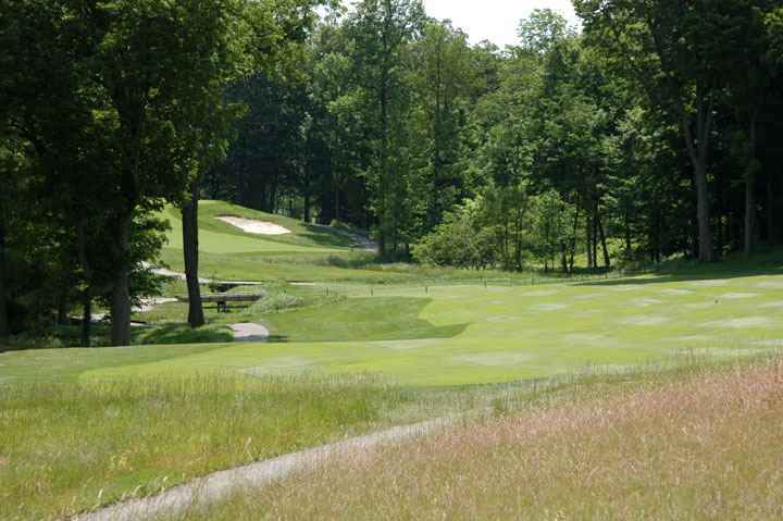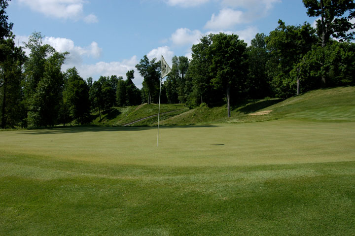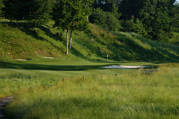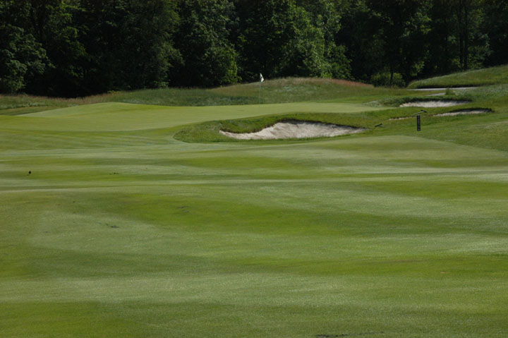 rough. On approach, balls hit left of green will be assisted by mounds.