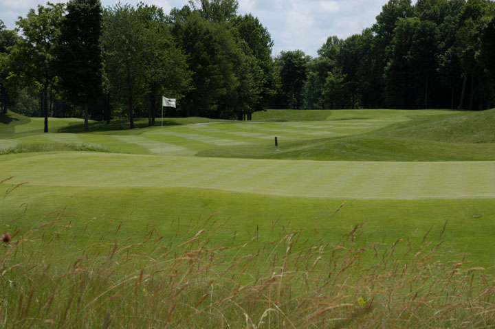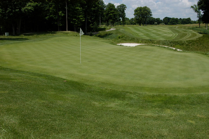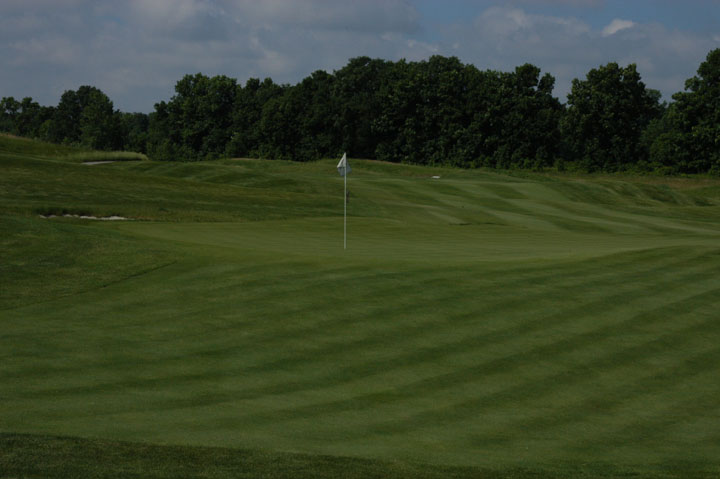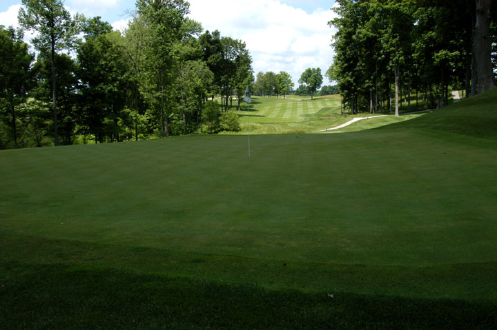 Back 50% of green slopes moderately toward rear of green. |