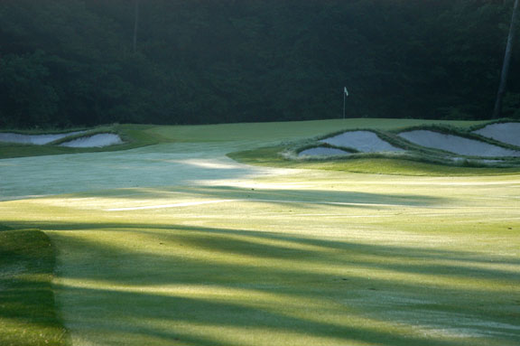 and long hitters can challenge right fairway by clearing bunkers (fairway