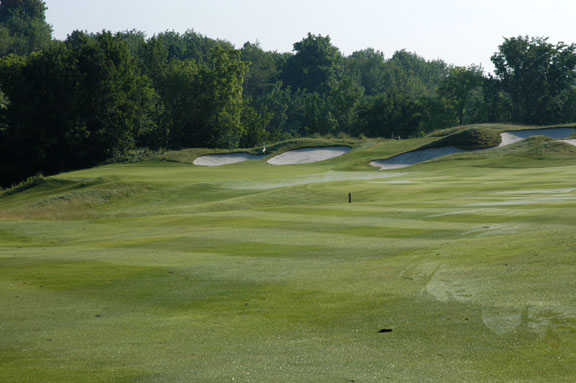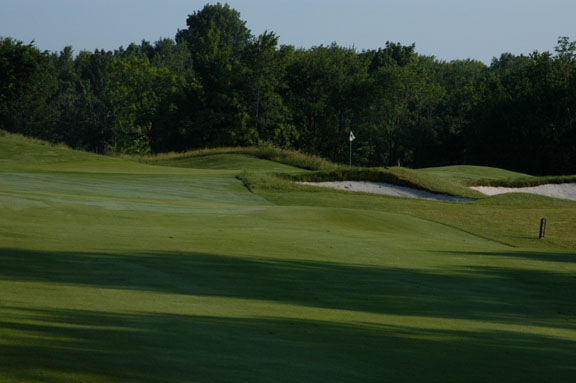 shot. Long, straight drives to center of fairway will run through into right