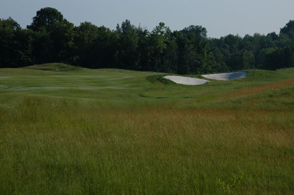 Just beyond view, the fairway bends slightly right, causing long drives