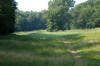 slender (~15yd wide) green with a ridge separating front and back halves.